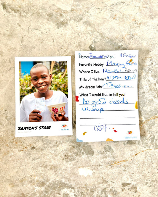 "THAMANI" bedeutet "Wert, Würde" auf Swahili und zeigt, dass jeder Mensch von unendlichem Wert ist, da er einzigartig geschaffen ist und bedingungslos geliebt wird. (Jesaja 43, 4)