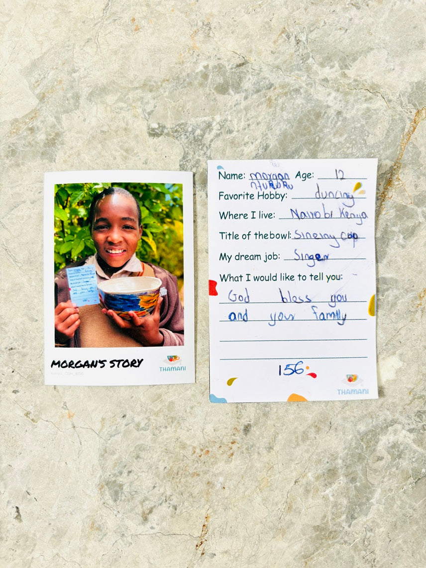 Die Design-Bowl wird dich in einer ansprechenden Überraschungsbox erreichen und enthält ein Foto sowie einen handgeschriebenen Brief des Kindes.