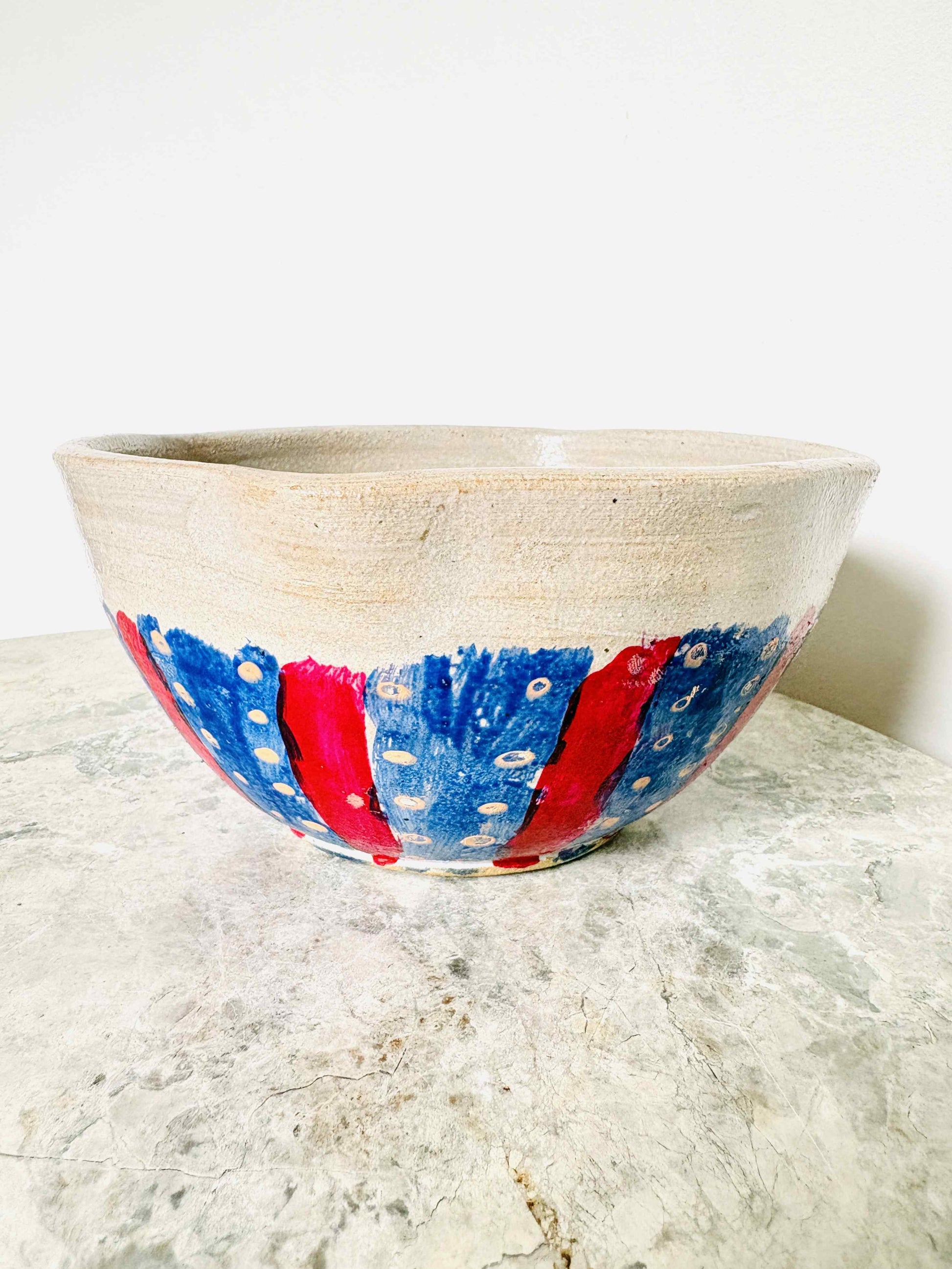Die auf der Abbildung sichtbare Bowl ist eine beispielhafte Orientierung für die Form (jedes Mal leicht anders durch die kreativ gewählten Ecken) und Größe. Die Malerei des Kindes ist zudem so individuell wie das Kind selbst.
