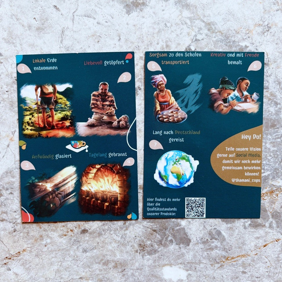Konformitätserklärung: Die THAMANI Keramik-Bowl aus Kenia entspricht allen Vorgaben und Normen der EU, der Schweiz und der USA für Keramik mit Lebensmittelkontakt. Gerne kannst du (hier) die Konformitätserklärung und die entsprechenden Prüfberichte herunterladen und einsehen.
